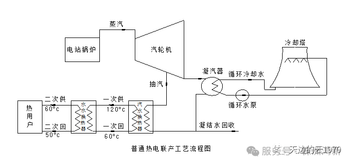 為充分利用電廠余熱,在各小區(qū)熱力站應(yīng)用大溫差供熱機(jī)組,并在電廠設(shè)吸收式熱泵(如圖)。通過各熱力站設(shè)置的大溫差供熱機(jī)組,一次網(wǎng)回水溫度由60℃可降到30℃以下。在電廠,采用吸收式熱泵技術(shù),用汽輪機(jī)抽出的蒸汽作為驅(qū)動熱源,并回收凝汽器的低溫余熱,加熱一次供熱管網(wǎng)的低溫回水。在這個(gè)系統(tǒng)中,由于可以保證凝汽器的循環(huán)冷卻水在20~40℃之間低溫運(yùn)行,可不必再進(jìn)入冷卻塔冷卻,從而大大減少了電廠的冷源損失。同時(shí),由于將低溫余熱回收利用,增加了熱源電廠的供熱量,在不增加熱電機(jī)組的情況下,大大增加了供熱能力。既為供熱公司解決了熱源不足問題,又給熱電廠增加了經(jīng)濟(jì)效益。另外,由于使用大溫差熱泵機(jī)組,一次線運(yùn)行水溫由120/60℃變成120/20℃,一次線供回水溫差由60℃增大到100℃,流量下降了40%,這樣在一次管網(wǎng)管徑不變的情況下就大大增加管網(wǎng)的輸送能力,同時(shí),由于流量減小,熱網(wǎng)阻力下降,大大改善了熱網(wǎng)水力工況,尤其是距離電廠最遠(yuǎn)的不利端的水壓狀況得到了改善。另外,由于流量下降了40%,進(jìn)而管網(wǎng)阻力下降64%,電廠大網(wǎng)循環(huán)水泵揚(yáng)程下降64%,循環(huán)水泵耗電量可下降78%。
